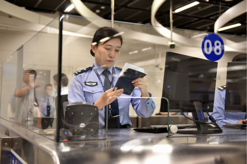 西九龍站內地口岸區邊檢人員核對證件。圖:中新社