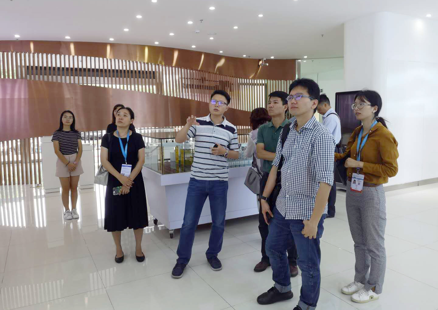 记者们在听取企业工作人员介绍。