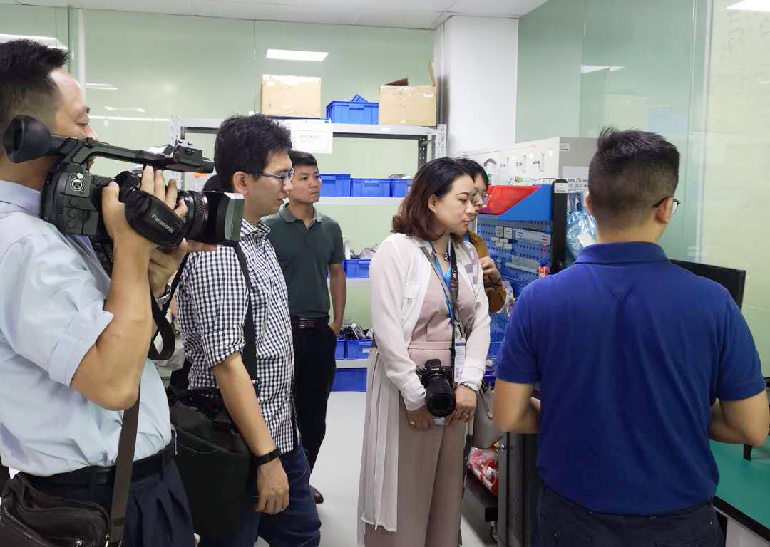 采访团一行来到位于白蕉科技工业园内的珠海精实测控技术有限公司,通过观看该公司宣传片、观摩产品展示、深入生产车间等多种形式了解企业发展情况。在声学测试中心,记者们走进仅有6分贝的全消声实验室,体验“全珠海最安静地方”;在品质检验工作间,记者们观看产品进行三维检测;在测试实验室,记者们详细了解微型马达系统、环境振动、精密力控等多项系统测试。采访中,记者们详细了解企业的产品结构、测试成本、服务对象等相关情况,并详细询问企业服务客户在“一带一路”的布局情况,并纷纷拿出相机、手机记录所见所闻。