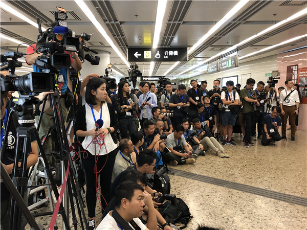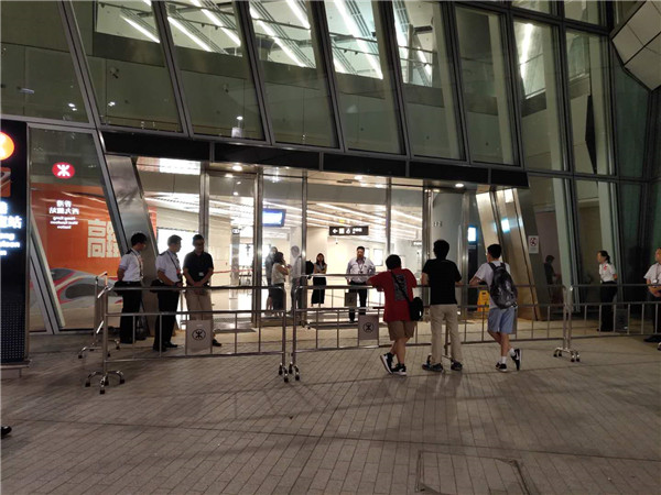 在清晨3时许,已经有不少传媒排队于柯士甸D1出入口集合,等候进入西九龙站工作。到目前4时,集合门口已有大批传媒等待入站。