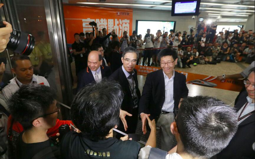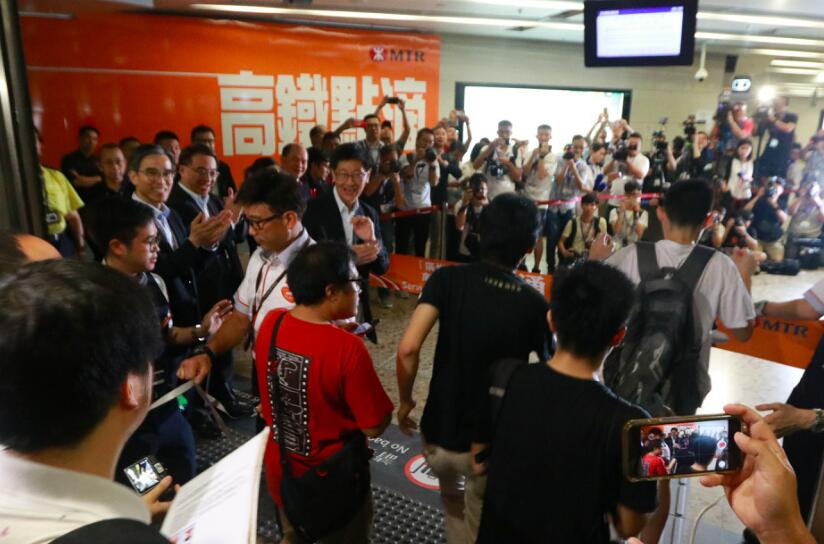 5:30,高铁首日运营仪式举行,運輸及房屋局局長陳帆和港铁主席馬時亨分别致辭。