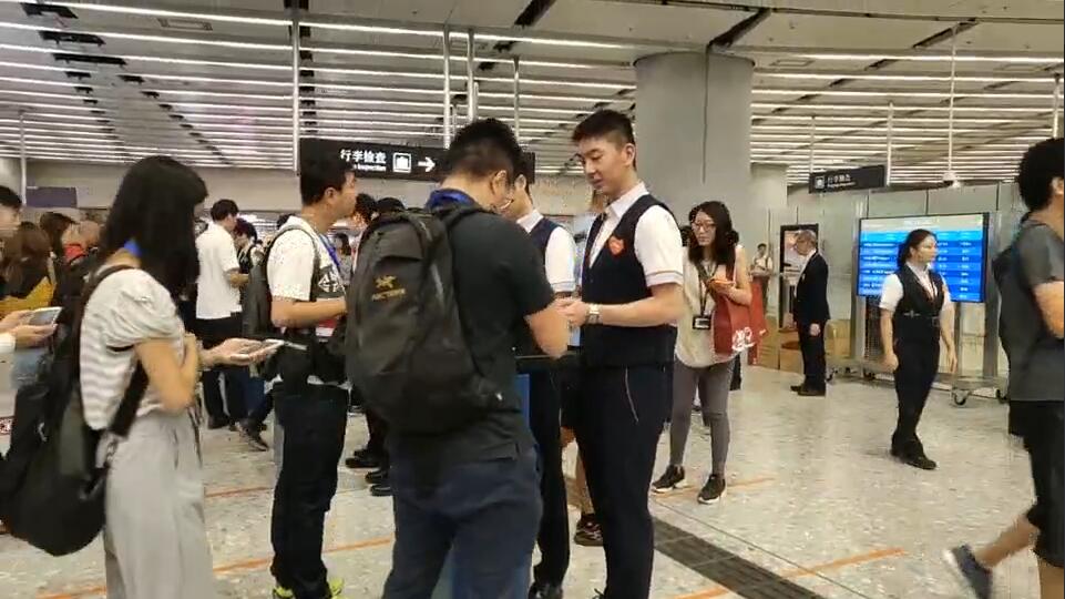 据了解,港铁将再5点半举行高铁首日营运仪式,现场已有近百位媒体记者在此处集合。数十位穿着橙色衣服的工作人员已到位,旁边似乎准备了不少给乘客的小礼物。
