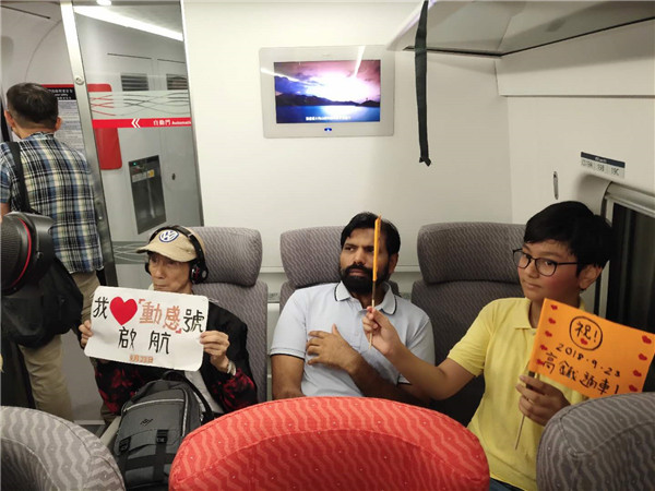 列車坐滿乘客,不少人又在車內拍照,表現興奮,有乘客稱不用20分鐘已到達香港,感覺很快。