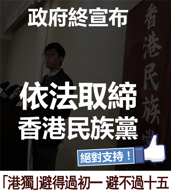 港澳办支持港府依法禁止“香港民族党”运作
