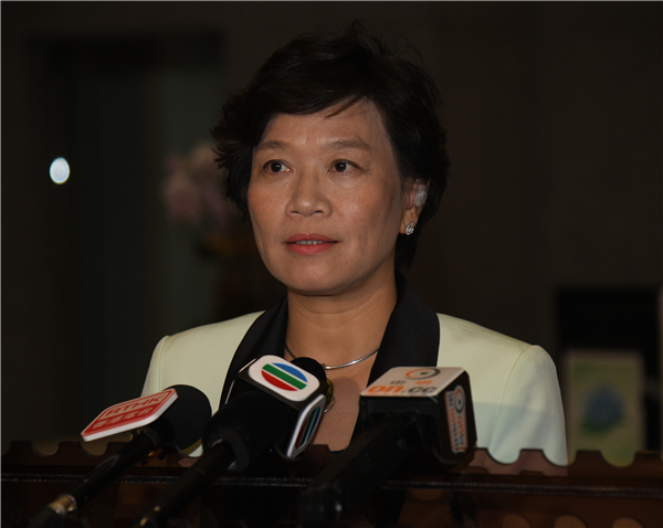 李慧琼(右二)、周浩鼎(右一)、陈克勤(左二)与梁志祥(左一)昨会见传媒。