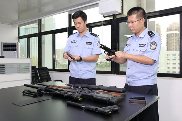 缉私警员检查查获的“枪支”。