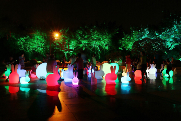 据了解,“湖光山色”2018西樵山天湖璀璨灯光夜活动是纪念西樵山风景名胜区成立三十周年系列活动之一,灯光展设为童梦乐园、心月之城、光影剧场、七彩花田、荧海森林、民间传说等六大主题区域,除了有造型独特吸睛的灯饰,如38米激光水幕、“超级月亮”、发光兔群、钢琴等主题,整个灯光展设计布置环绕天湖呈现春夏秋冬四季色彩变换的主调,让游览灯光展的市民游客感受色彩与景区融合的梦幻。