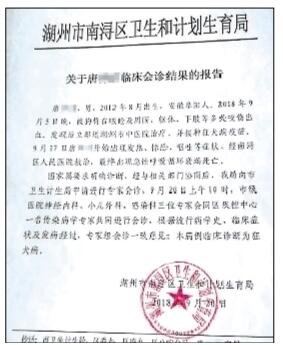 9月20日,湖州市南浔区卫生和计划生育局发布的关于唐锦源临床会诊结果报告显示,经市级多名专家进行疾病会诊,根据流行病学史、临床症状及发病经过,诊断为狂犬病。
