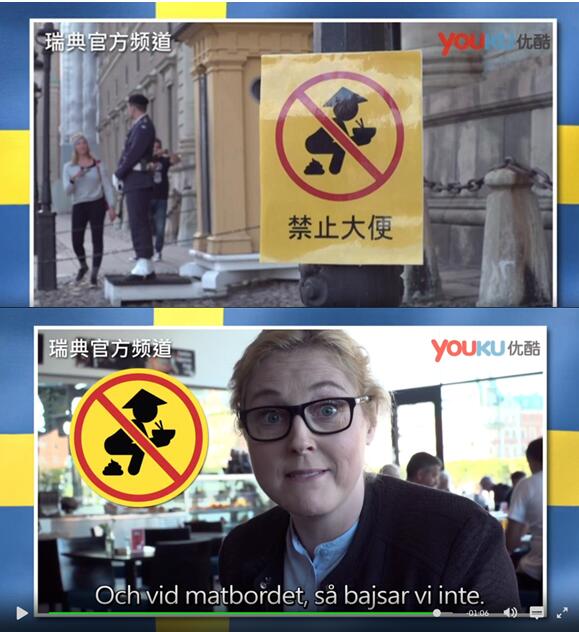 主持人对中国游客提出多条“信息提示”,包括“我们不在历史建筑物外拉屎。但是你要是手上有一点大便,在瑞典我们就洗手”。