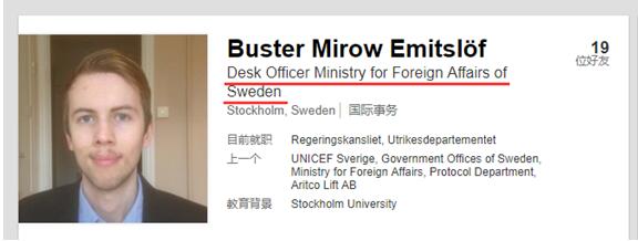 艾米特斯洛夫的领英档案显示他是瑞典外交部联络处的干事