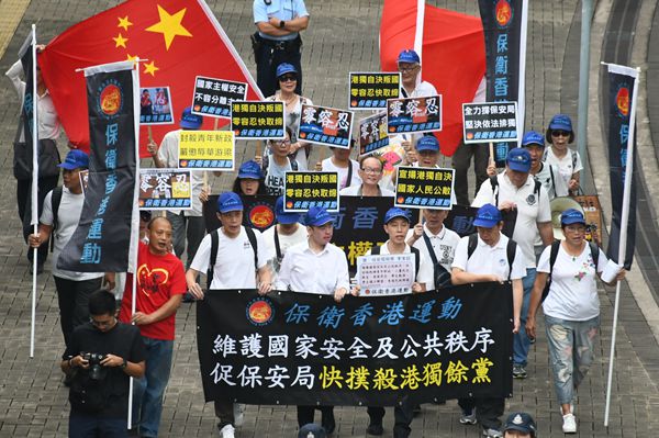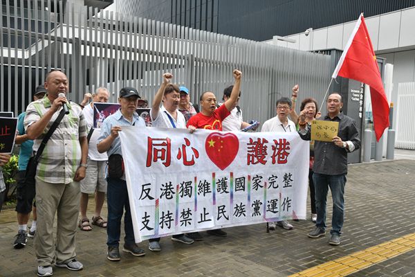 另外,團體「保衛香港運動」約20名成員同樣由金鐘海富中心遊行至政府總部,高叫「國家主權安全、不容分離主義」、「港獨自決叛國、零容忍快取締」、「宣揚港獨自決、國家人民公敵」等口號。
