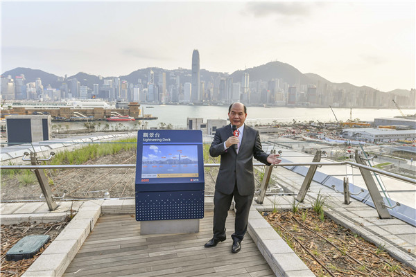 李聖基昨日特別介紹,除了高鐵服務外,西九龍站超過3公頃的綠化區亦已全面開放,供乘客及市民享用。其中西九龍站標誌性天幕建築的頂部上,設有綠化空間及天空走廊。市民可沿天空走廊步行至觀景台,欣賞維多利亞港的美景。整個綠化區設有連綿起伏的草坪和植物,形成一條綠色通道連接西九龍文化區海濱一帶至佐敦道北面,供乘客及市民消閒休息。他期望西九高鐵站可成為本港的新地標。