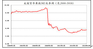 美国有条件加息,但请不要简单地认为美联储加息、缩表一定导致美元流动性收缩。我们看不到美元流动性的真实状况,但完全可以通过美国M2的变化去大致判断美元流动性的情况。理论上说,我们必须牢记这样的一个公式:M2=基础货币×货币乘数。因为我们需要明白:如果美联储在加息、缩表过程中,可以引导货币乘数上升,M2就不会减少,甚至可能保持一定的增速。