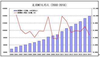 图2:美国M2走势(红线是增速,蓝柱是数量)