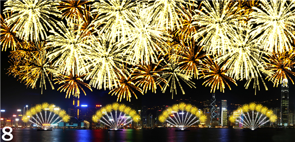 10月1日晚上9時在維多利亞港上空將舉行國慶煙花匯演,最後一幕為「再創輝煌」。