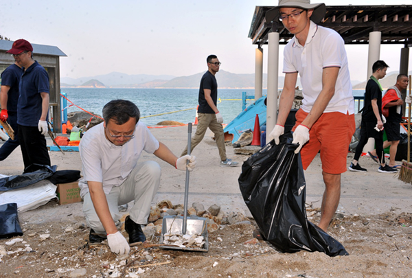 【香港商报网讯】中联网站消息,9月29日下午,中央政府駐港聯絡辦40余名員工在陳冬副主任帶領下,來到新界銀線灣海灘幫助清理超強颱風“山竹”造成的雜物垃圾。這是中央政府駐港聯絡辦繼22日組織員工參與港島杏花村清潔運動之後,再次倡議大家到受災嚴重的地區開展義工活動,得到廣大員工的熱烈響應。
