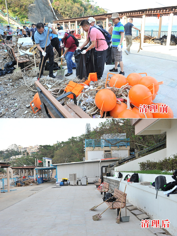 清理前後的海灘走廊過道。(圖片來源:中央政府駐港聯絡辦)