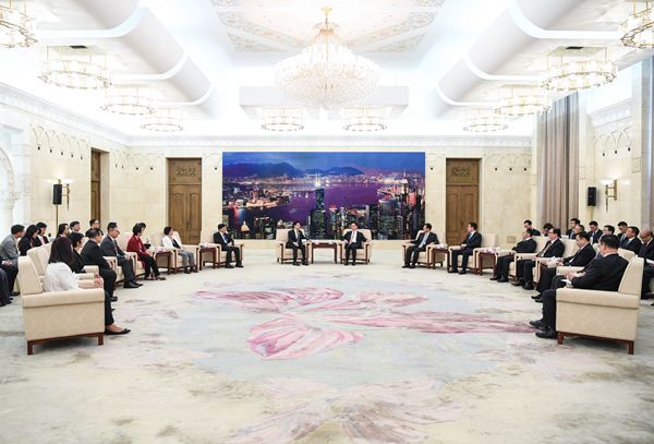 代表團一行昨午於北京人民大會堂獲中共中央政治局常委、國務院副總理韓正接見,國務院港澳辦主任張曉明參加了會見。