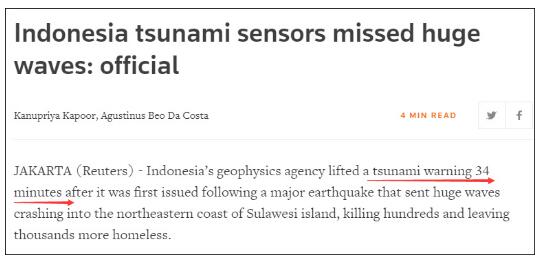 印尼社交媒体在当局撤消海啸警告后不久,就传出巨浪侵袭帕卢沿岸的影片;然而官方在数小时后,才对外证实苏拉威西省多处沿海地区受到海啸侵袭。