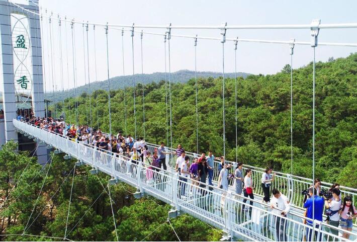 据了解,玻璃桥全长288米,宽3.6米,每块玻璃面积达7平方米,是广东省玻璃桥单块玻璃最大的玻璃桥。走在玻璃桥上,如同踏上天空之镜,也犹如漫步云端。体验完玻璃桥后,游客还可以乘坐高空飞索、空中飞船、极速飞车等项目。还有即将开放的呐喊泉,只要你大声的呐喊,就会出现拨地而起的壮观喷泉,最高可达到88米。国庆假期来到盈香生态园,还可以玩转机动游乐园,欣赏百亩醉蝶花海。