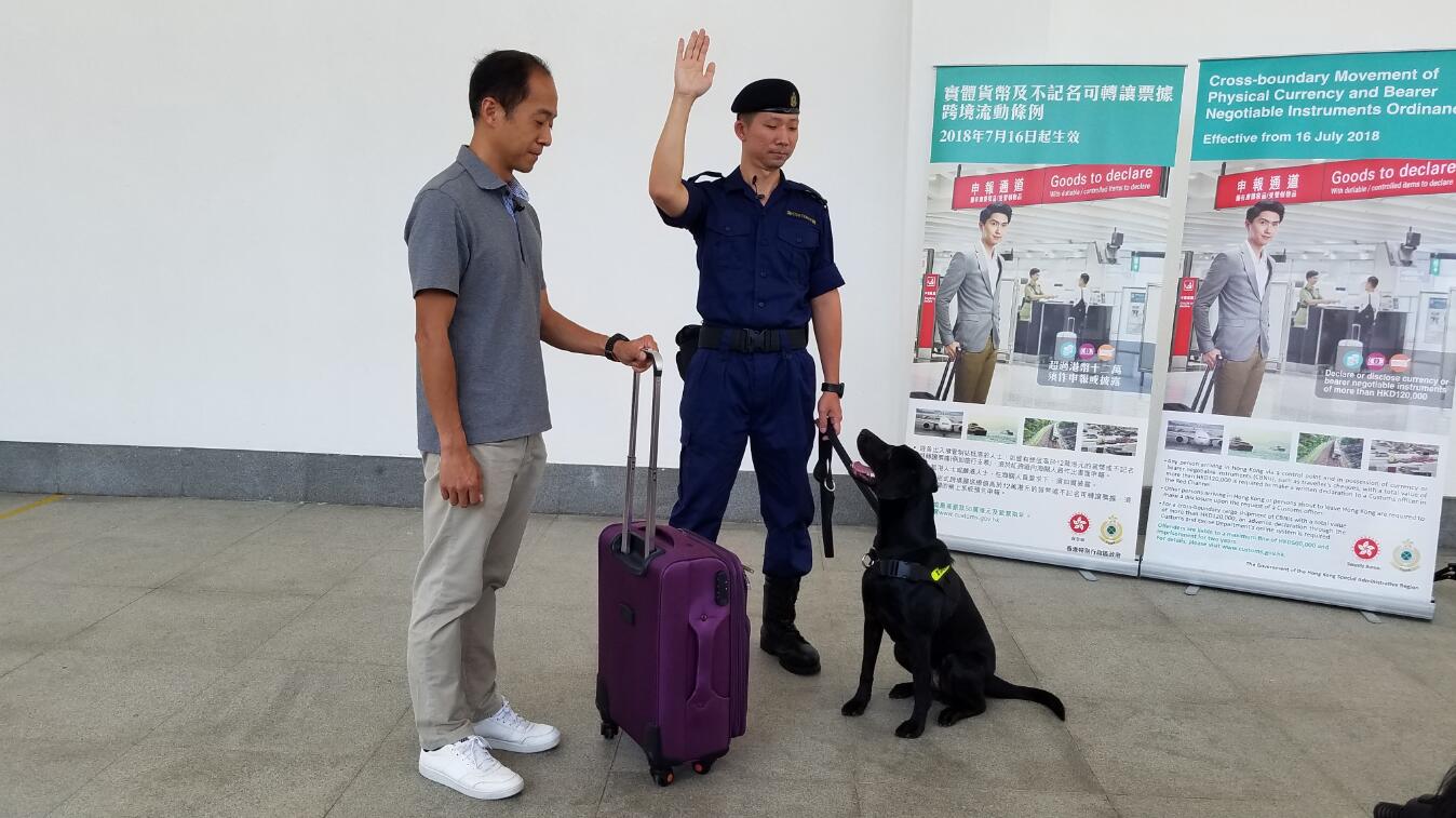 為配合《條例》實施,海關首次引入4隻「鈔票搜查犬」配合執法工作。海關搜查犬組高級督察(行政及訓練)林美儀表示,4隻「鈔票搜查犬」均為拉布拉多尋回犬,雄性及雌性各2隻,平均2歲,均來自英國。她說,拉布拉多尋回犬服從性高、膽量大、搜尋意欲強、嗅覺靈敏,而且外貌及性格溫馴,故此適合作為工作犬。