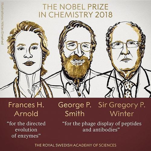 10月3日,2018年諾貝爾化學獎揭曉,加州理工學院科學家弗朗西斯·阿諾德、密蘇裏大學科學家喬治·史密斯及劍橋大學MRC分子生物實驗室格雷格·保羅·溫特獲得2018諾貝爾化學獎,以表彰他們 “肽類和抗體的噬菌體展示技術”的貢獻。