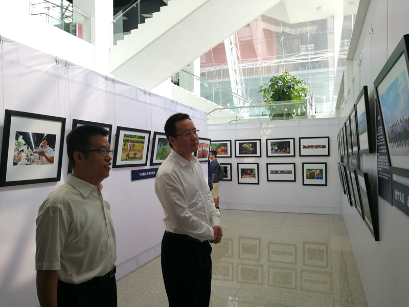 深圳市政府副秘书长、深圳对口帮扶河源指挥部总指挥王卫(右一)观看图片展