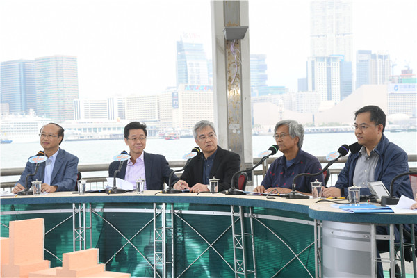 左起:刘振江、凌嘉勤、任宪邦及麦萃才一同讨论“明日大屿”计划。