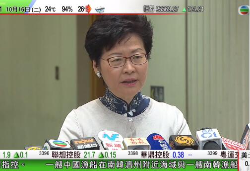 林鄭表示,發展局會先做交椅洲1000公頃填海的研究(電視截圖)