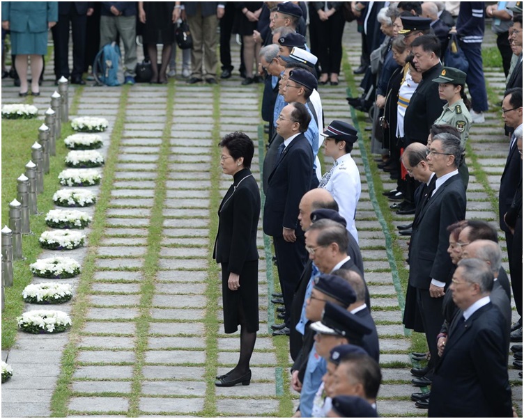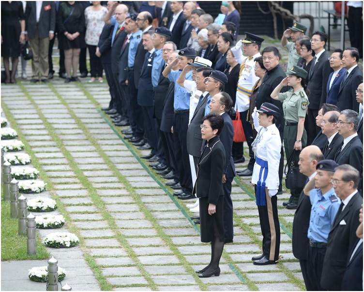 儀式早上九時舉行,出席人士包括行政長官林鄭月娥,中聯辦主任王志民、終審法院首席法官馬道立、行政會議成員葉國謙、李國章、張宇人、立法會議員郭偉強等超過300人。全體默哀兩分鐘後,由林鄭月娥代表特區政府獻花圈,並鞠躬致敬,立法會議員和行政會議成員,原東江縱隊港九獨立大隊成員和退伍軍人團體等,再逐一獻花圈,然後警察步槍儀仗隊鳴槍作結,之後奏唱國歌。