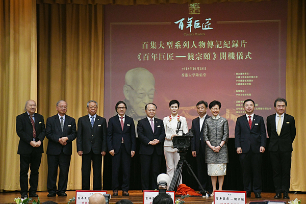 由中國文學藝術界聯合會、中央廣播電視總台、中國藝術研究院聯合攝製的紀錄片《百年巨匠——饒宗頤》,昨日於香港大學陸佑堂舉行開機儀式,邀請了行政長官林鄭月娥、中聯辦主任王志民、香港大學校長張翔等人出席。林鄭月娥在致辭時表示,饒公是一位蜚聲國際的人文學者、國學泰斗,畢生鑽研學問和進行藝術創作,包括對中國和藝術文化等多方面的研究,期望大眾能秉承他對國學的熱情,特別是向年輕一代推廣中國研究及文化。