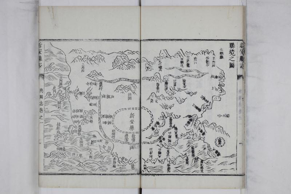 康熙版《新安縣誌》裏「縣境之圖」上手寫的繁體字地名的墨跡依然清晰。