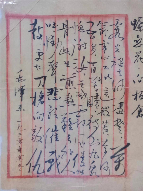 除了蘇維埃從紅軍到解放軍的歷程時期的郵票,今次展出的還有1950德國出品的毛澤郵品,以及蓋有1957年郵戳的郵件等等,其中最其中最具歷史價值還是毛澤東悼念夫人楊開慧犧牲而作的三首詩詞手稿,《祭妻文》,《蝶戀花.向板倉》,《調寄憶秦娥》。展出方表示,均为毛澤東真跡。