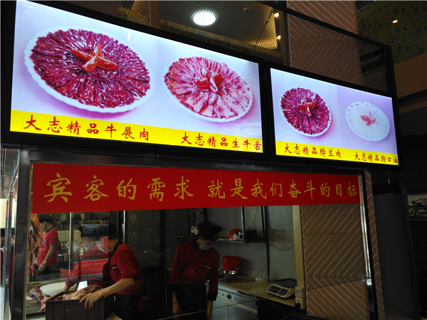 店里的牛肉都来自陕西秦川小黄牛肉,一般2、300公斤左右。去骨再去掉次品,能做火锅的只有几十斤的肉。而大志牛的师傅们,也都是庖丁解牛的高手,对牛的每一个部位都了如指掌,能把牛肉切出花来,每一刀都是精切厚薄,才能保证肉12秒就能烫熟。他家的牛肉,每一处不同部位都有独特的口感,学会这些词,才能吃透大志牛!那一刻,灵感油然而生,大家围炉欢聚,汤料翻滚,共同下箸,又说又笑,享受劳动的快乐,丰收的喜悦……热闹里吃牛肉火锅,吃的就是热闹,看得见的新鲜!这就是热闹里鲜牛肉火锅,鲜鲜鲜鲜鲜鲜鲜!