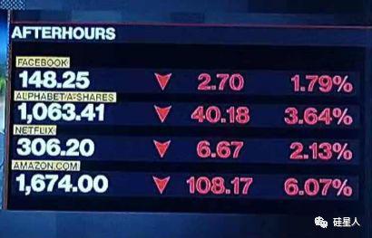 在今天美股盘后交易中,亚马逊和Alphabet不停的下跌,Facebook、Netflix也跟着躺枪,一起下跌。