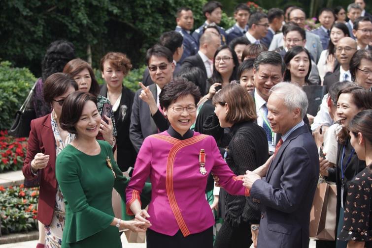 特區政府昨日於禮賓府舉行勳銜頒授典禮,並在典禮後於禮賓府花園舉辦茶會。今年共有282人獲授勳銜,當中獲頒大紫荊勳章的有4人,包括終審法院非常任法官鄧楨(曾任終審法院常任法官,本月25日起轉為非常任法官)、新界鄉議局副主席張學明、亞洲金融集團主席陳有慶、港大醫學院內科學系榮休教授楊紫芝。