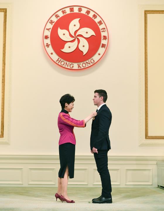 昨日舉行的授勳頒授典禮中,亦有頒發各種英勇勳章,以表揚紀律部隊等服務人員。其中,在2016年底於澳洲洪水中勇救被困香港女遊客的澳洲警員ZacharyBrianRolfe,獲得銅英勇勳章,他是香港回歸以來首位非港人獲授勳。
