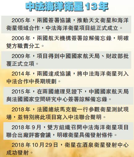該衛星由中法兩國歷時13年合作研製完成,中方負責提供衛星平台、海風觀測載荷以及發射測控,法方負責提供海浪觀測載荷。