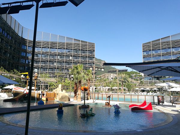 【香港商報网訊】記者何加祺報道:香港海洋公園萬豪酒店由即日起試業,預計運行約1個月後正式開幕。酒店佔地34000平方米,設有471間設計獨特的客房及套房,當中包括320間豪華及尊貴客房、8間豪華套房等。為配合環保主題,酒店房間以暖色調為主,外牆則使用了環保物料,以鋁合金阻隔陽光,節省能源。酒店大堂特別設有16米高的圓柱型水族館,垂直跨越3層樓,將展示過千條特色海水魚類、河豚及其他非瀕臨絕種野生海洋生物等。