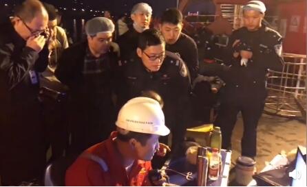今日早上五点,上海打捞局技术人员又开始布场调试打捞设备。