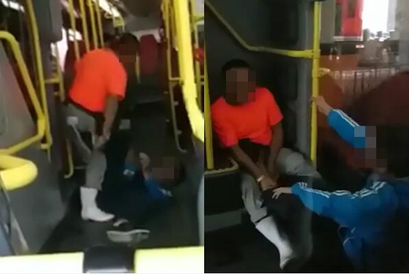 兩男由巴士外打到上車。影片截圖
