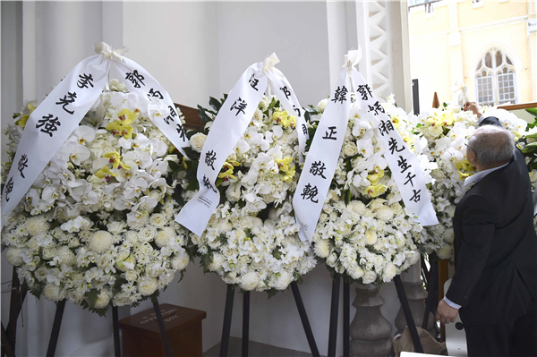 昨日教堂內外,放滿了數以百計由各界人士致送的花圈,除領導人致獻的花圈外,致送者還包括長和李嘉誠及李澤鉅父子、新世界鄭家純及鄭志剛父子、港鐵主席馬時亨夫婦、全國政協常委唐英年、前全國人大常委范徐麗泰等。