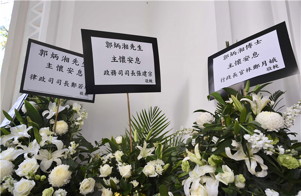 行政長官林鄭月娥、政務司司長張建宗、律政司司長鄭若驊送上花圈。