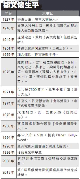 影壇大亨鄒文懷昨日逝世,享年91歲。