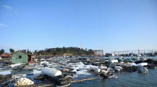 受事故影响,不少渔排上的泡沫浮材被腐蚀,造成渔排下沉,当地渔民损失严重。