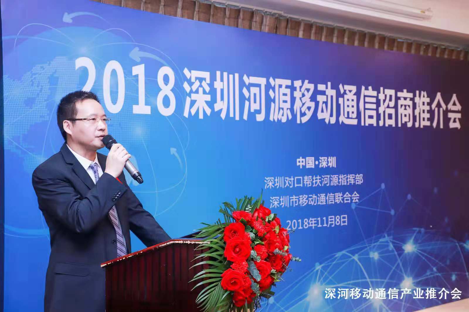 【香港商报网讯】记者余丽龄 通讯员薛明地报道:11月8日下午,2018河源(深圳)移动通讯招商推介会在深圳举办。深圳对口帮扶河源指挥部、河源市高新区管委会、市经信局、市商务局等相关部门负责人,各县区指挥部总指挥以及近60家深圳移动通信行业企业负责人参加推介会。
