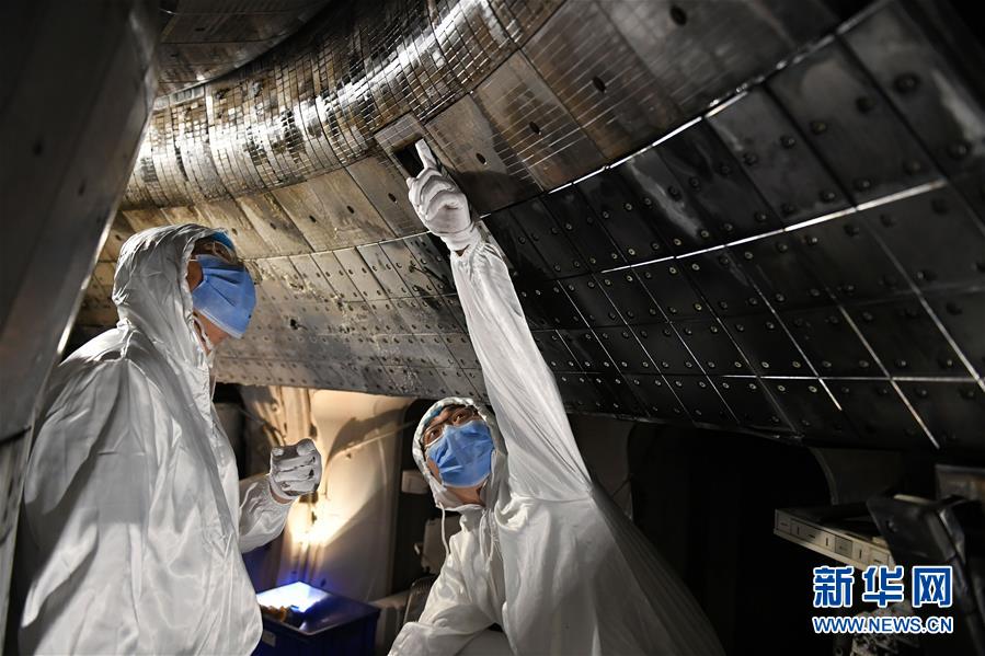 这是2018年度EAST物理实验后,科研人员在进行EAST装置内部检查(8月29日摄)。
