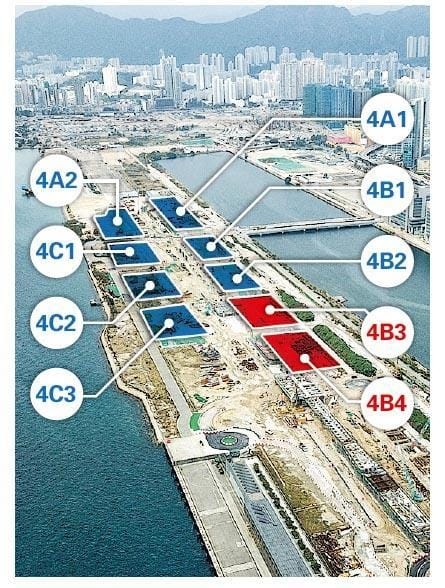 两块红色地皮,正式近期售出两幅啟德地皮的位置