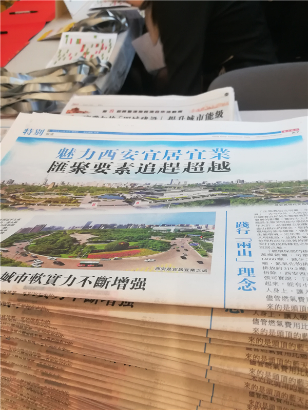 现场摆放《香港商报》供嘉宾阅览,文章全面报道陕西优良营商环境。