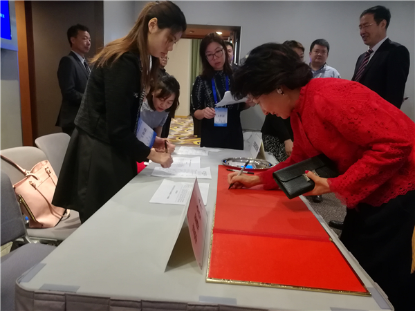香港陕西联谊会会长、正大制药集团总裁郑翔玲女士抵达会议现场。